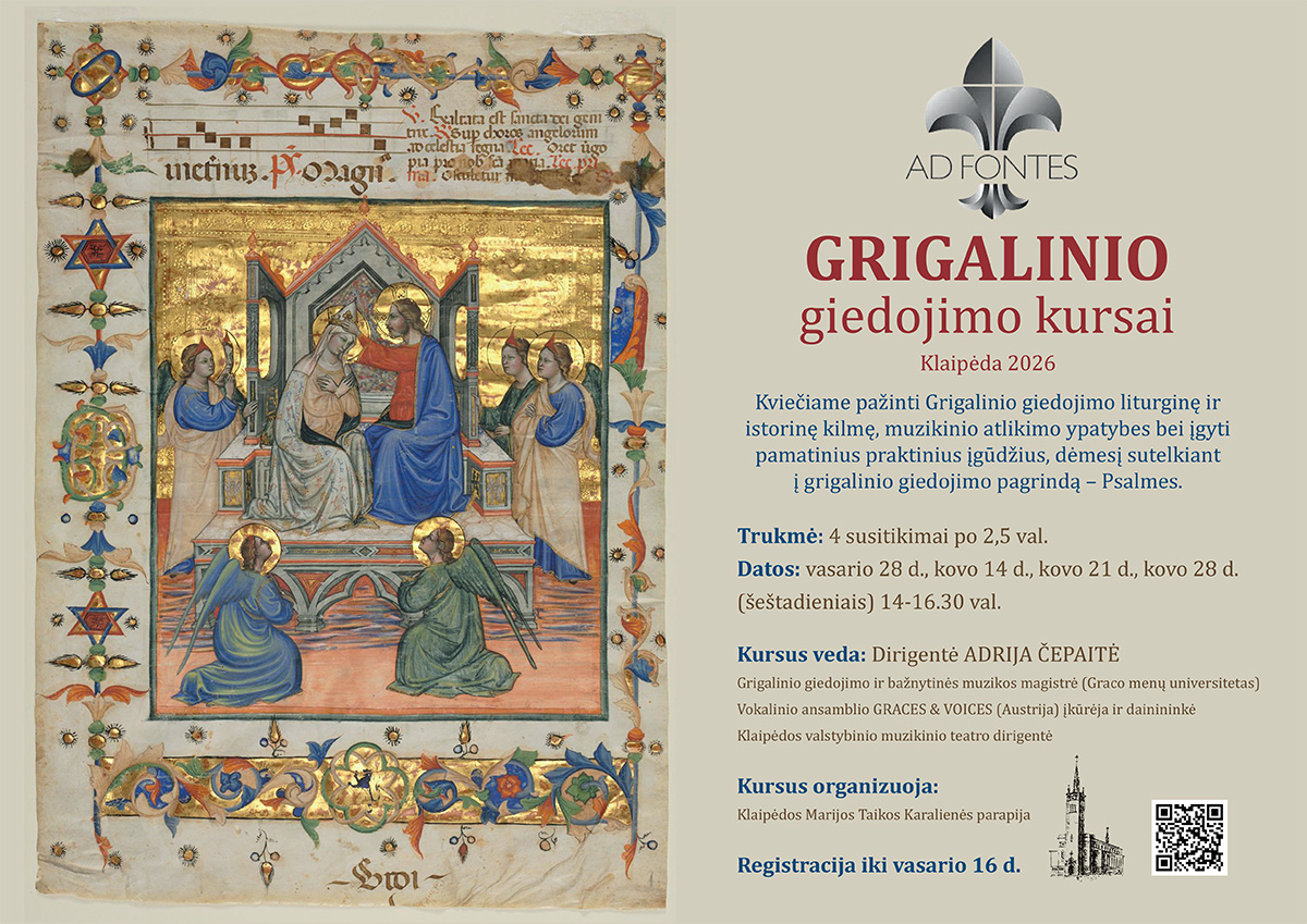 Klaipėdos Marijos Taikos Karalienės parapija ir VšĮ "Miesto Angelas" organizuoja grigalinio giedojimo kursus.