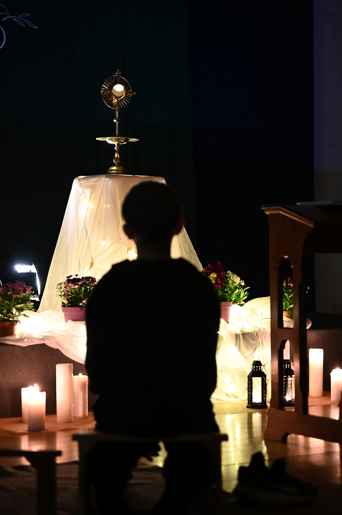 Po dviejų valandų aktyvaus sporto, dalyviai turėjo galimybę atsipūsti ir aptarti renginio įspūdžius vakarienės metu. Kol jaunimas vakarieniavo, vadovai ruošėsi Švč. Sakramento adoracijai, kuri tradiciškai vyko seminarijos penktame aukšte. Kartu su adoracija jaunuoliai turėjo galimybę atlikti išpažintį, parašyti laišką Dievui bei pašlovinti Viešpatį giesmėmis.