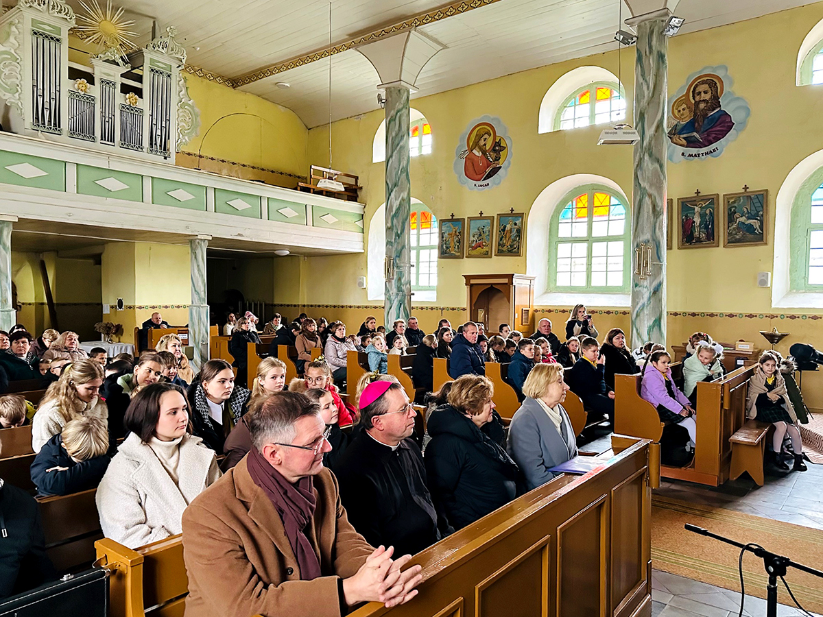 Sakralinės muzikos šventė prasidėjo šv. Mišiomis, kurioms vadovavo Telšių vyskupas Algirdas Jurevičius, o koncelebravo kunigai: Saulius Stumbra bei Dainoras Židackas. Neveikiant mikrofonams dėl elektros stygiaus, vyskupas išėjo į bažnyčios vidurį ir vaikams sakė homiliją apie jaunatvę ir šventumą. Ganytojas priminė, jog Dievas duoda pašaukimą labai jauname amžiuje: Viešpats pašaukė Samuelį, kad tas dar buvo berniukas, o štai Dovydas buvo pašauktas būti karaliumi paauglystėje... Vyskupas paminėjo ir Nazareto mergaitę Mariją, pas kurią apsilankęs arkangelas Gabrielius pranešė džiugią žinią, jog Viešpats ją išsirinko būti Jo Sūnaus motina. Marija tuomet buvo labai jauno amžiaus... Vaikai dar niekad nebuvo matę vyskupo iš taip arti, todėl įdėmiai klausėsi. Mišių metu elektra buvo trumpam atsiradusi, bet ir vėl pradingo.
