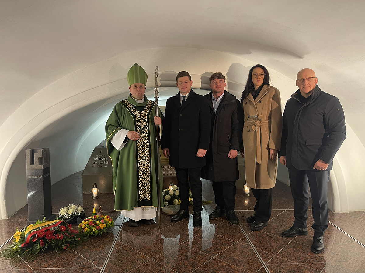 Po šv. Mišių Telšių katedroje buvo sugiedotas Lietuvos Respublikos himnas. Liturginė procesija nusileido į kriptą, kurioje prie vyskupo signataro Justino Staugaičio kapo Telšių rajono savivaldybės meras padėjo signatarui skirtą puokštę. Pasimeldę ir pagerbę nusipelniusius vyskupijos ganytojus žmonės išskubėjo į šventinį koncertą.