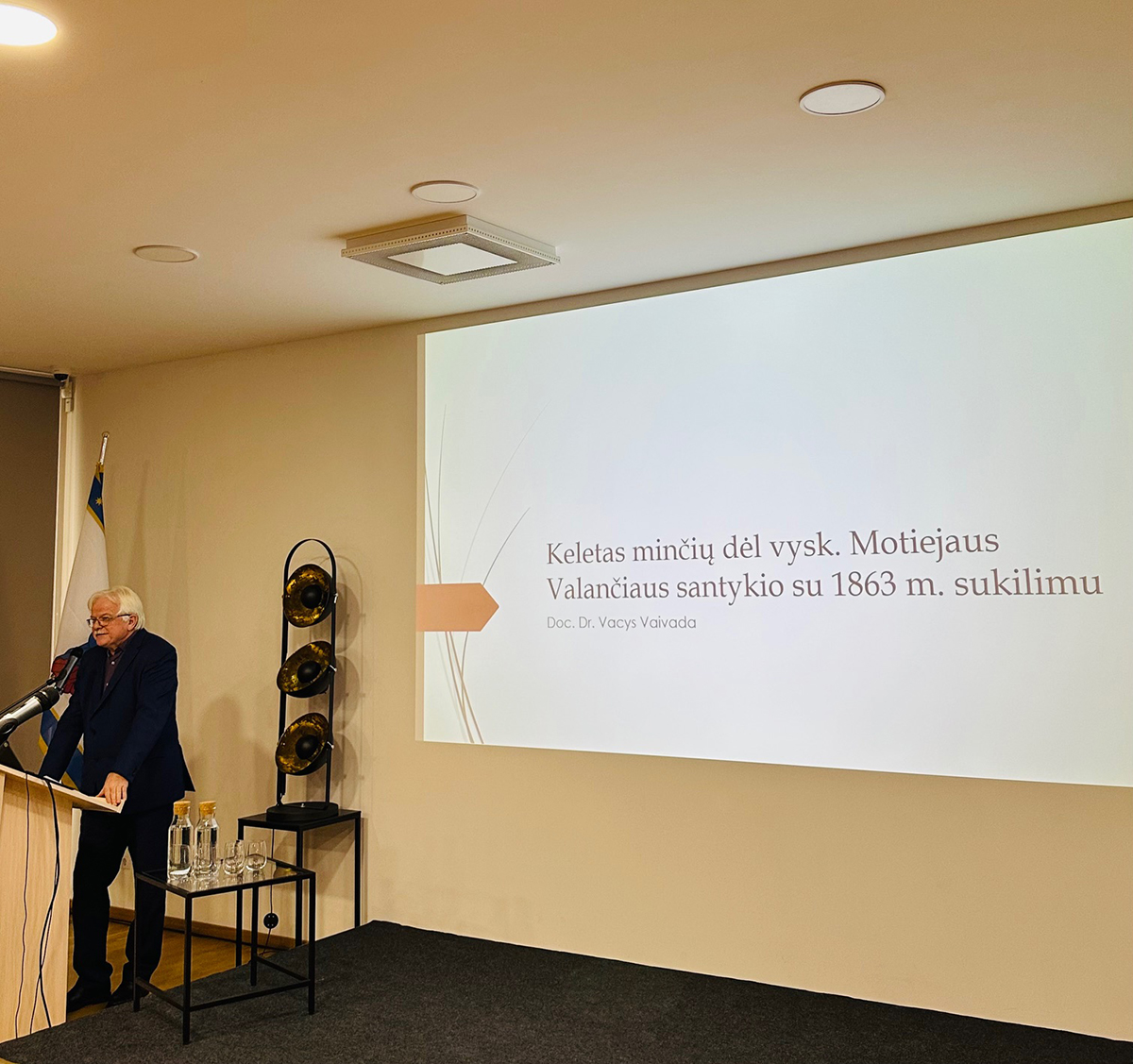 Doc. dr. Vacys Vaivada pristatė pranešimą „Keletas minčių dėl vysk. M. Valančiaus santykio su 1863 m. sukilimu“. Prelegentas pateikė gan įdomią įžanginę medžiagą apie tai, kaip carinėje Rusijoje buvo tvarkomi Katalikų Bažnyčios reikalai po trečiojo Lietuvos – Lenkijos valstybės padalijimo (1795 m.). Įvykę sukilimai prieš caro valdžią atnešė daugiau suvaržymų ir sankcijų Bažnyčiai, todėl vyskupas M. Valančius elgėsi labai apdairiai ir diplomatiškai, reaguodamas į sukilimo padarinius.