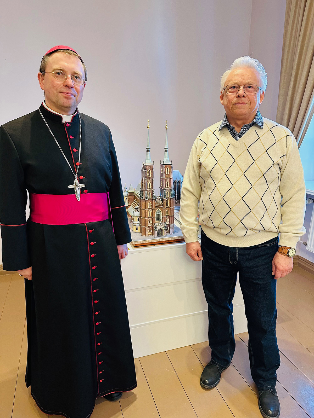 Tautodailininkas Rimantas Minkus, pristatydamas savo kūrinius, labai jaudinosi, nes pirmą kartą jo darbų parodoje dalyvauja vyskupas, meras ir kita tokia garbinga publika. Šiaulietis, turintis inžinerinį išsilavinimą ir dirbęs pagal specialybę, išėjęs į pensiją atrado nepaprastai įdomų hobį – kurti tikslumu garsėjančius pasaulio garsiausių šventovių modelius. Prieš sėsdamas kurti, jis inžinieriaus akimi kruopščiausiai nagrinėja pastato architektūrą tam pasitelkdamas nuotraukas, filmuotus siužetus, dronų nuotraukas ir kitą viešai prieinamą medžiagą. Kartais tenka netgi nukeliauti į tą šalį ir gyvai pamatyti „kuriamą“ objektą. Pagrindinį darbą reikia atlikti pačiam, tačiau ypač tiksliems ir smulkiems darbams yra pasitelkiami kiti, pvz. pjaustymas lazeriu, dažymas – dekoravimas ir kt.