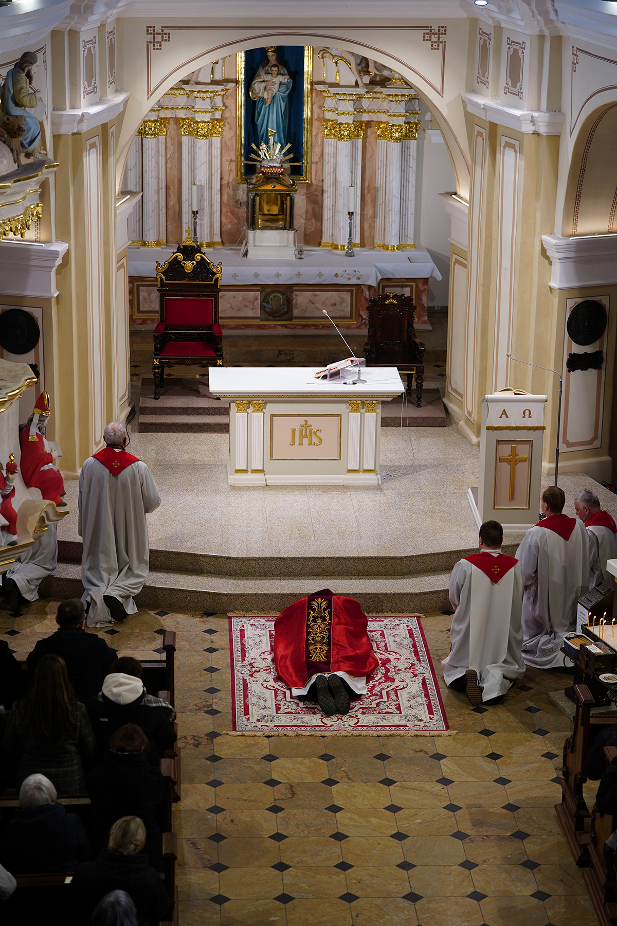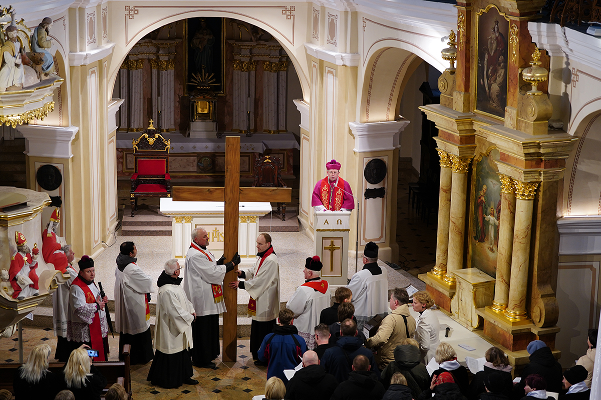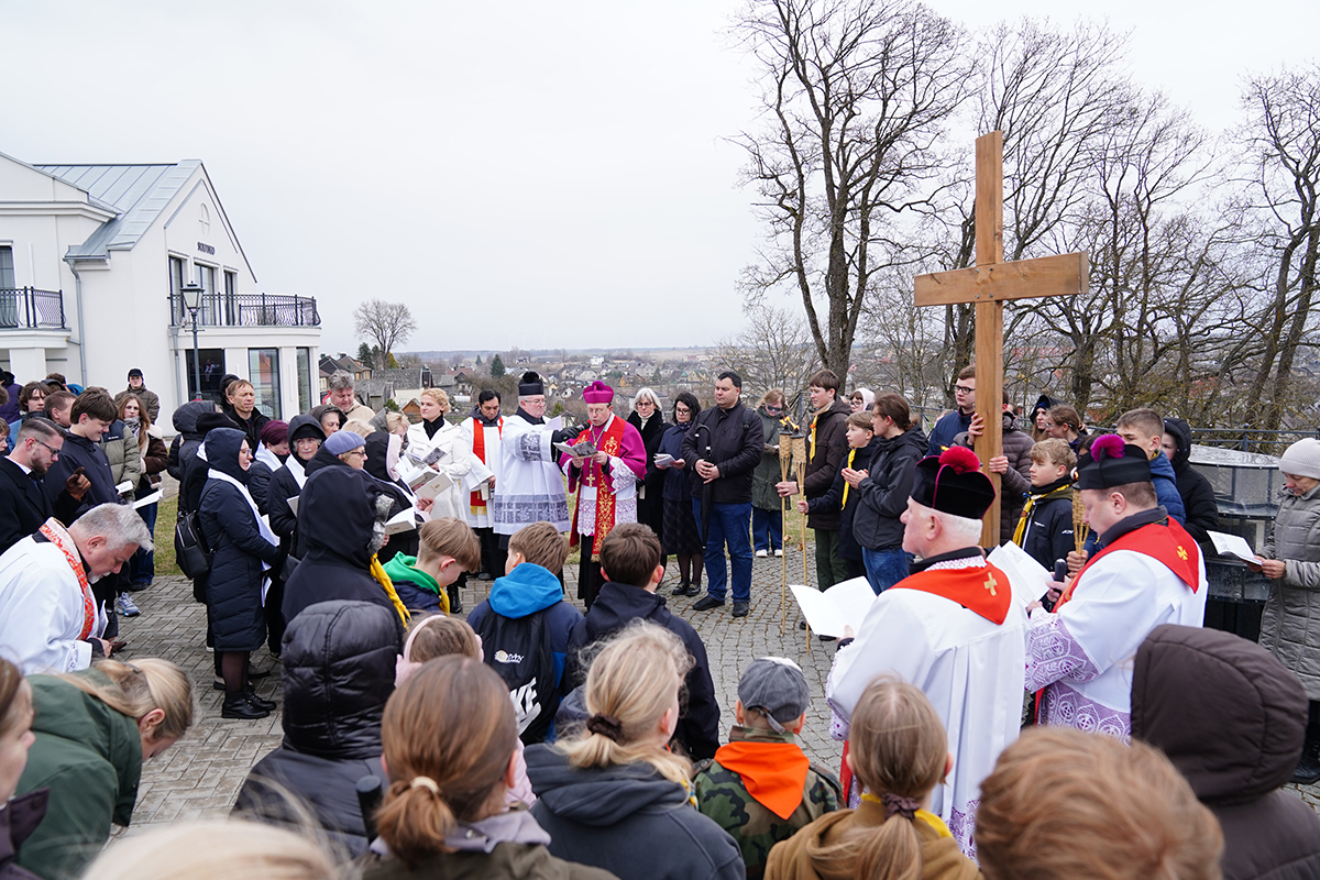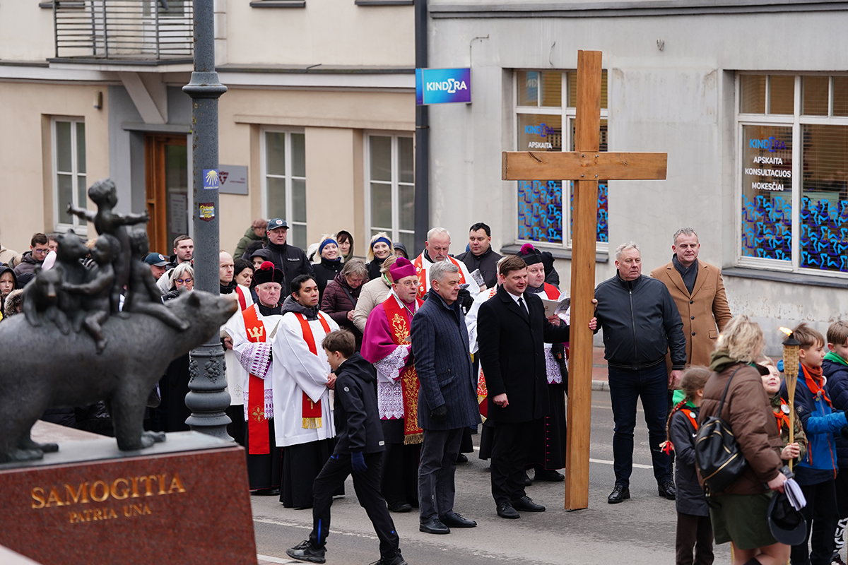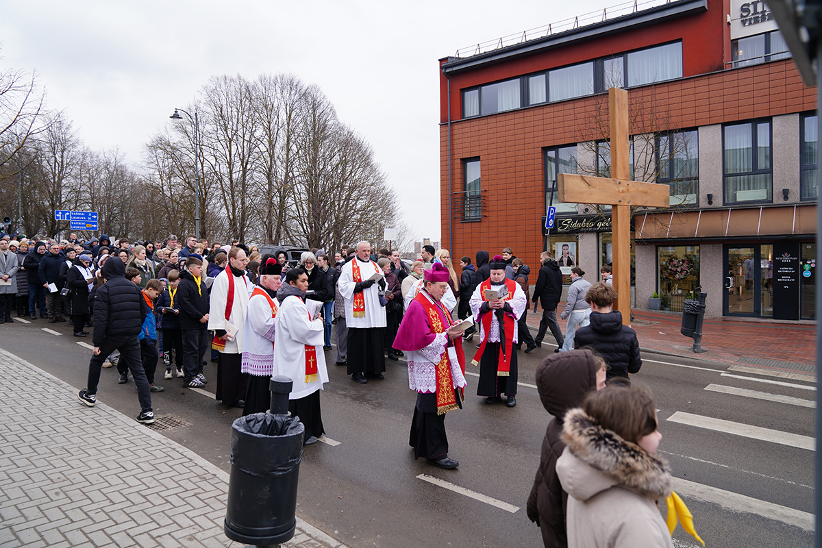 Atėjus į Katedrą vysk. Algirdas Jurevičius meldėsi: „Tavo kryžiaus kelyje, Viešpatie, mokėmės iš Tavęs tikslingo ėjimo tikslo link – kryžiaus link. Meldžiame, atnaujink Telšių vyskupijos veidą, perkeisk mus ir padėk mums vykdyti Tavo valią“.