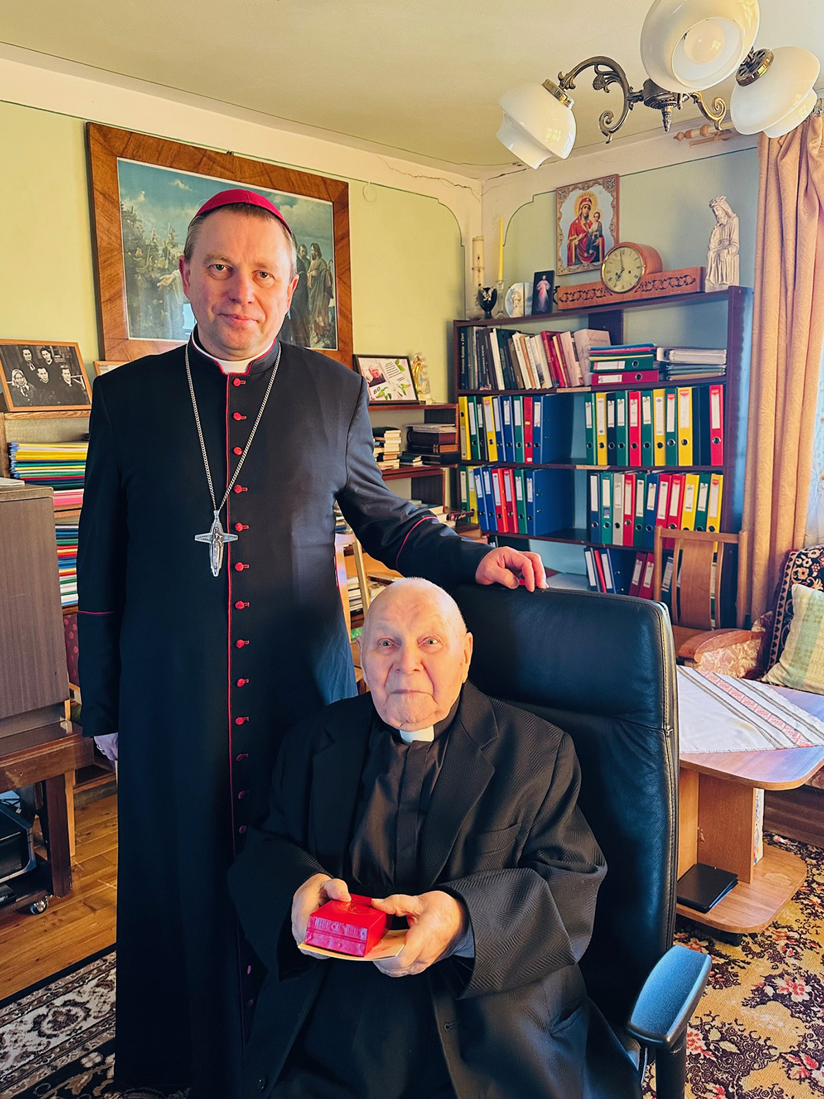 Šimtąjį vyskupijos gimtadienį Telšių vyskupas, lydimas kun. Sauliaus Stumbros, nusprendė įprasminti aplankydamas senyvo amžiaus ir sergančius kunigus. Ganytojas aplankė Rietavo parapijos rezidentą kun. Česlovą Degutį, Švėkšnos parapijos rezidentą prel. kan. Petrą Vincentą Stuką, Šilutės parapijos rezidentą kan. Joną Bučinską, Palangos parapijos rezidentą kan. Antaną Striukį, Klaipėdos šv. Kazimiero parapijos rezidentą kun. Adolfą Pudžemį OFM ir ligos ištiktą parapijos kleboną kun. Tomą Žlibiną. Aplankytiesiems dvasininkams vyskupas dėkojo už ilgametę tarnystę Bažnyčioje ir apdovanojo Šventojo Justino medaliu.