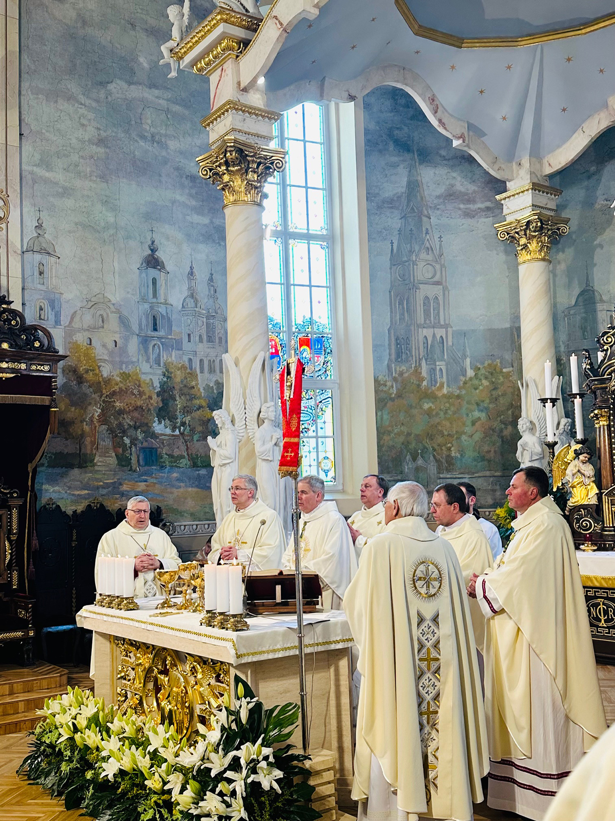 Šv. Mišioms vadovavo Panevėžio vyskupas Linas Vodopjanovas OFM, koncelebravo arkivysk. Kęstutis Kėvalas, vysk. Rimantas Norvila, vysk. Darius Trijonis, vysk. Algirdas Jurevičius, vysk. Jonas Kauneckas ir gausus būrys kunigų. Homilijoje vysk. Linas kalbėjo apie iš numirusių prisikėlusio Kristaus džiaugsmą ir apie Dievo gailestingumą, tam tikrus teologinius akcentus siedamas su Panevėžio vyskupijos istorija.