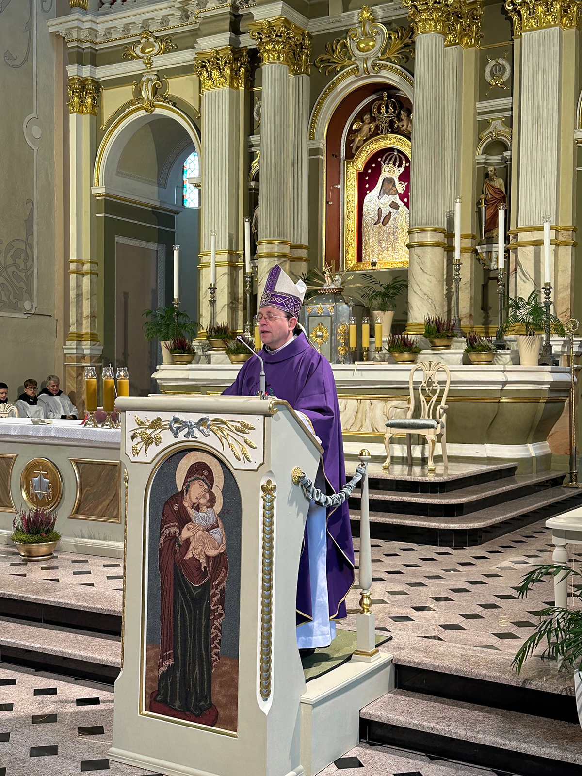 Homilijoje vyskupas kalbėjo apie krikščioniškąjį tikėjimą, padedantį nugalėti mirties baimę. Juk prisikėlęs Kristus, atėjęs pas apaštalus, prabilo žodžiais „Nebijokite!“. Ganytojas ragino skubėti mylėti žmones, nes jie taip greitai išeina. Kuomet netenkame mylimo žmogaus, suprantame, kiek daug nepasakėme, per mažai parodėme meilės, galėjome daug ko paklausti ir sužinoti. O kai žmogus iškeliauja, prarandame galimybę tai padaryti. O kas lieka? – Malda už mirusiuosius. Ji kompensuoja visus mūsų prarastų galimybių trūkumus ir atveria visai naują žvilgsnį į mirusiųjų pasaulį, kuris yra ne kas kita, kaip Dievo pasaulis.
