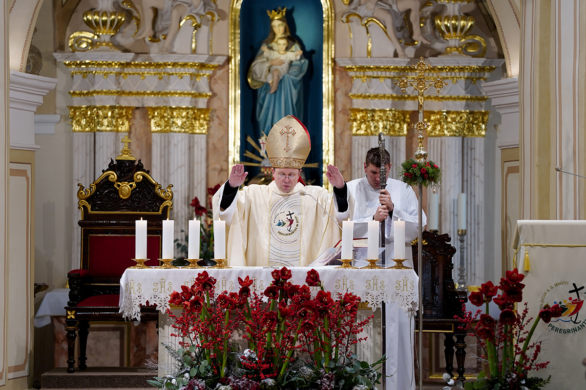 Homilijos žodžiui ganytojas lipo į istorinę trečią šimtmetį skaičiuojančią sakyklą, iš kurios skelbiamos pačios iškilmingiausios žinios. Iš ten vyskupas pristatė šv. Juozapą kaip piligrimą, kuris net naktį keliasi, ima motiną bei kūdikį ir pasitraukia į Egiptą. Tikras piligrimas visuomet ieško Dievo valios ir yra jautrus Viešpaties balsui, kalbančiam per Šventąjį Raštą ir Bažnyčios mokymą.