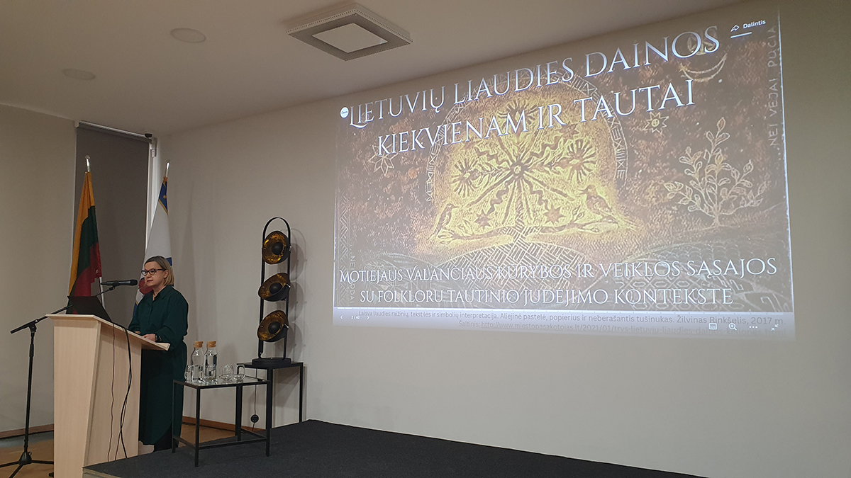 Bibliotekininkė Rita Vaitkienė pažvelgė į vyskupą M. Valančių kaip į giesmių ir liaudies dainų saugotoją. Pranešime „Lietuvių liaudies dainos – kiekvienam ir tautai“ prelegentė pristatė iki vyskupo M. Valančiaus buvusius lietuvių liaudies dainų bei giesmių rinkinius ir plačiau nagrinėjo vyskupo indėlį į lietuvių liaudies, kaip dainuojančios tautos, įvaizdžio kūrimą. Pristatyme buvo parodyta evoliucija nuo liaudies dainų užrašymo iki tarpukariu gimusios dainų šventės bei jos išpopuliarinimo mūsų laikais. Folkloro ansamblio „Šokupis“ atlikta liaudies daina pagyvino mokslinių inspiracijų prisodrintą nuotaiką.