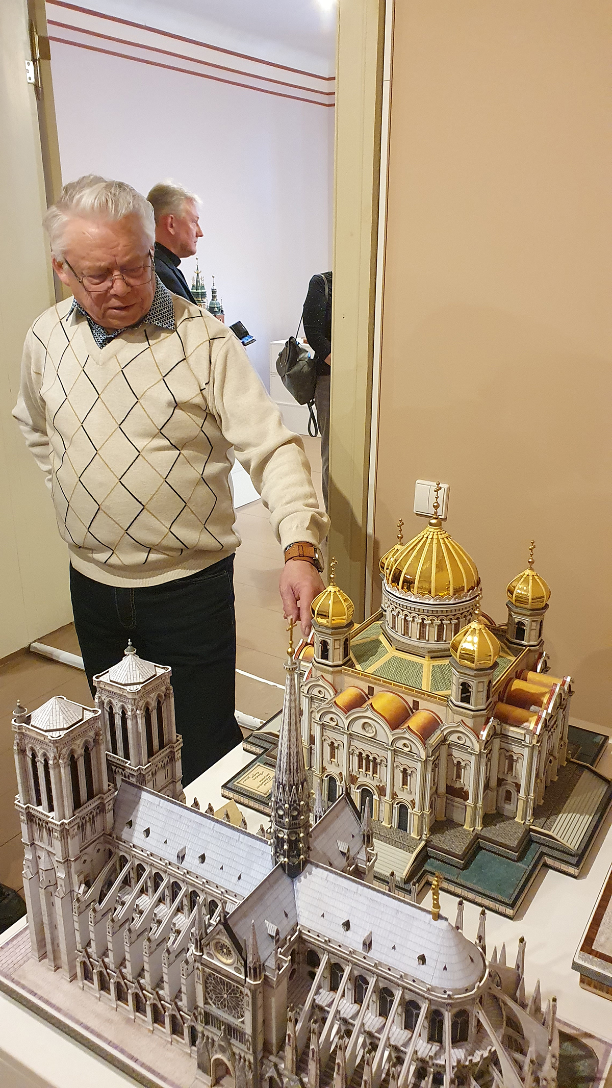 Tautodailininkas Rimantas Minkus, pristatydamas savo kūrinius, labai jaudinosi, nes pirmą kartą jo darbų parodoje dalyvauja vyskupas, meras ir kita tokia garbinga publika. Šiaulietis, turintis inžinerinį išsilavinimą ir dirbęs pagal specialybę, išėjęs į pensiją atrado nepaprastai įdomų hobį – kurti tikslumu garsėjančius pasaulio garsiausių šventovių modelius. Prieš sėsdamas kurti, jis inžinieriaus akimi kruopščiausiai nagrinėja pastato architektūrą tam pasitelkdamas nuotraukas, filmuotus siužetus, dronų nuotraukas ir kitą viešai prieinamą medžiagą. Kartais tenka netgi nukeliauti į tą šalį ir gyvai pamatyti „kuriamą“ objektą. Pagrindinį darbą reikia atlikti pačiam, tačiau ypač tiksliems ir smulkiems darbams yra pasitelkiami kiti, pvz. pjaustymas lazeriu, dažymas – dekoravimas ir kt.