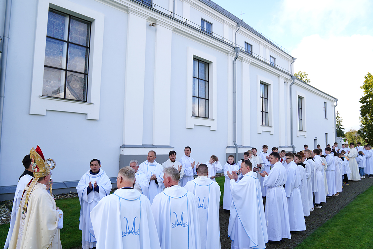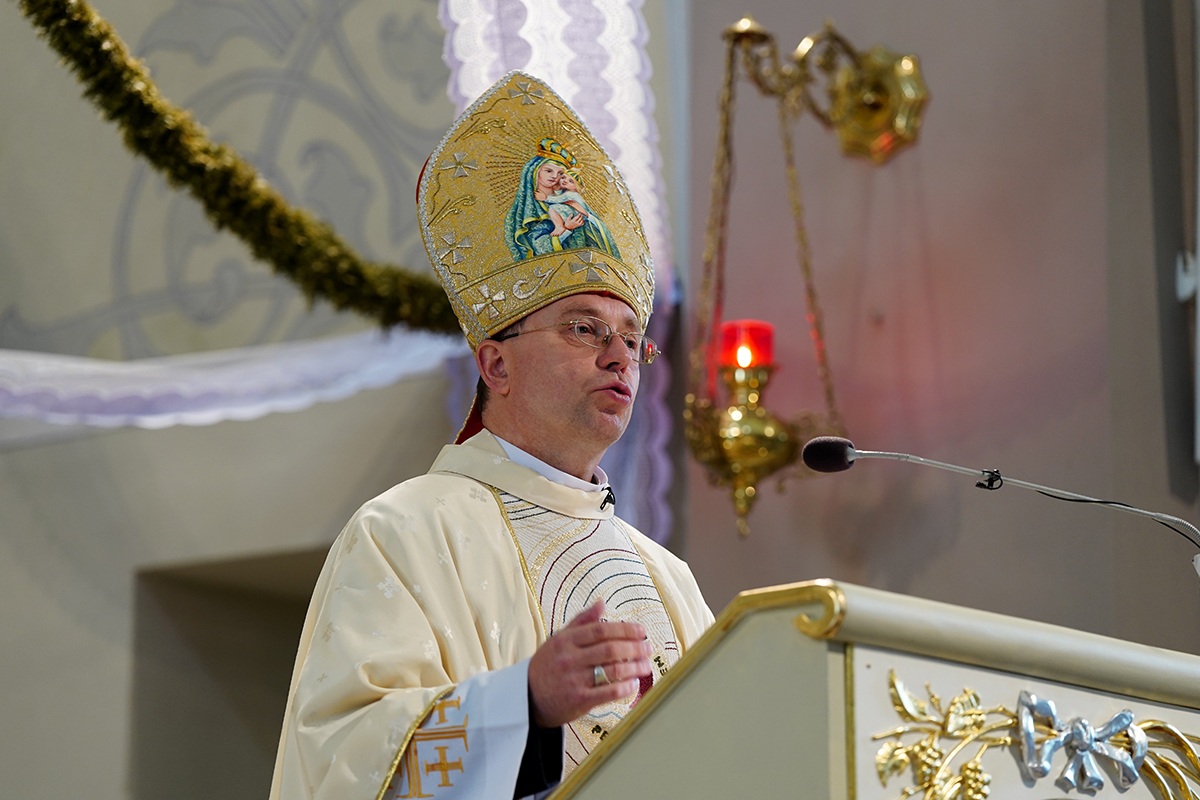 Telšių vyskupas kalbėjo: „Šioje ypatingoje piligrimystės vietoje, Marijos – Šeimų Karalienės akivaizdoje, noriu padėkoti jums už drąsą kartu liudyti tikėjimą, už ištikimybę vienas kitam ir krikščioniškajam tikėjimui. Jei šeimos žmonės kels į dangų maldai rankas, valstybė turės ateitį. Ačiū jums, kad jūs tą ateitį kuriate.“