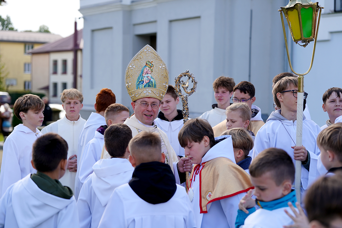 Vyskupas priminė, jog 2006 m. spalio 8 d. paveikslas buvo karūnuotas pop. Benedikto XVI pašventintomis karūnomis ir jam buvo suteiktas Marijos – Krikščioniškų Šeimų karalienės titulas. Popiežių sudomino pasakojimas, kad Žemaičių Kalvarijos šventovę lankyti pamėgo jaunos šeimos, sutuoktiniai kartu su savo vaikais eina Kryžiaus kelią ir gieda Kalnus.