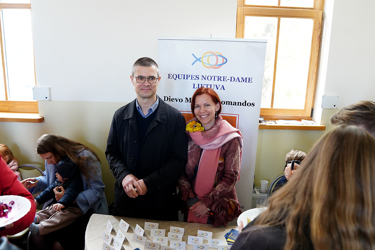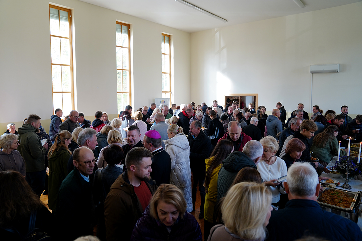 Bazilikoje prasidėjusi bendrystė su Viešpačiu ir su bendruomene buvo tęsiama parapijos salėje. Sutuoktiniai neskubėjo namo, vaišinosi, dalijosi gyvenimo patirtimi ir įspūdžiais. Kol bus tikėjimą praktikuojančių šeimų, valstybė turės ateitį.