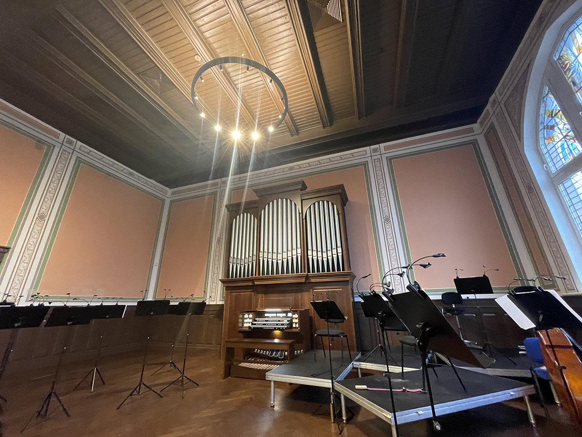 Baltojoje menėje buvo pristatyta Angelinos Banytės sukurta freska „Mokytojas“. Po to visi šventės dalyviai persikėlė į atnaujintą ir restauruotą Vitražinę menę, kurioje Klaipėdos universiteto rūpesčiu buvo pastatyti JAV gamintojo Allen skaitmeniniai vargonai.