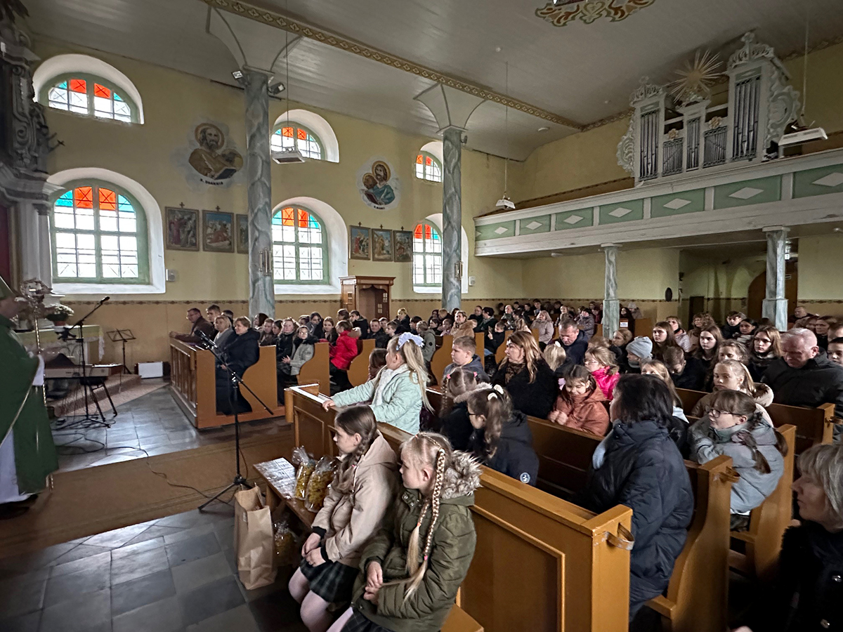 Sakralinės muzikos šventė prasidėjo šv. Mišiomis, kurioms vadovavo Telšių vyskupas Algirdas Jurevičius, o koncelebravo kunigai: Saulius Stumbra bei Dainoras Židackas. Neveikiant mikrofonams dėl elektros stygiaus, vyskupas išėjo į bažnyčios vidurį ir vaikams sakė homiliją apie jaunatvę ir šventumą. Ganytojas priminė, jog Dievas duoda pašaukimą labai jauname amžiuje: Viešpats pašaukė Samuelį, kad tas dar buvo berniukas, o štai Dovydas buvo pašauktas būti karaliumi paauglystėje... Vyskupas paminėjo ir Nazareto mergaitę Mariją, pas kurią apsilankęs arkangelas Gabrielius pranešė džiugią žinią, jog Viešpats ją išsirinko būti Jo Sūnaus motina. Marija tuomet buvo labai jauno amžiaus... Vaikai dar niekad nebuvo matę vyskupo iš taip arti, todėl įdėmiai klausėsi. Mišių metu elektra buvo trumpam atsiradusi, bet ir vėl pradingo.