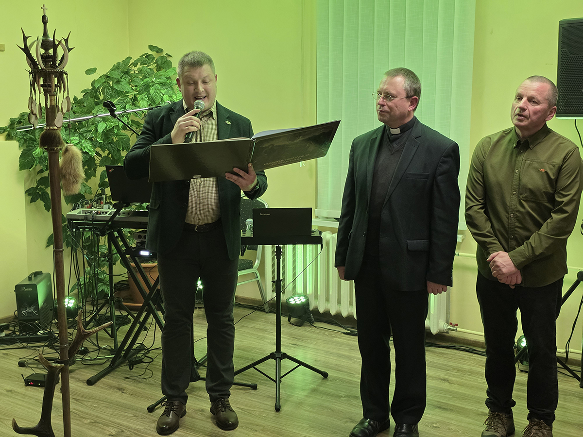 Lietuvos medžiotojų ir žvejų draugijos pirmininkas Virginijus Kantauskas kalbėjo apie medžiotojams svarbių įstatymų priėmimą ir įteikė padėką Telšių vyskupui už palankų žvilgsnį į medžiotojų bendruomenę, supratimą apie gamtą, jos turtus ir atsakomybę, kurią kiekvienas medžiotojas prisiima. Padėkos žodyje vyskupui pirmininkas kalbėjo: „Jūsų maldos, teikiamos malonės ir skleidžiamas tikėjimo žodis mus yra tvirta atrama, įkvepianti ne tik gerbti Dievo kūriniją, bet ir joje gyventi su dar didesne pagarba ir vidine ramybe. Dėkojame už Jūsų nuoširdų palaikymą, prasmingas įžvalgas bei dvasinę globą“.