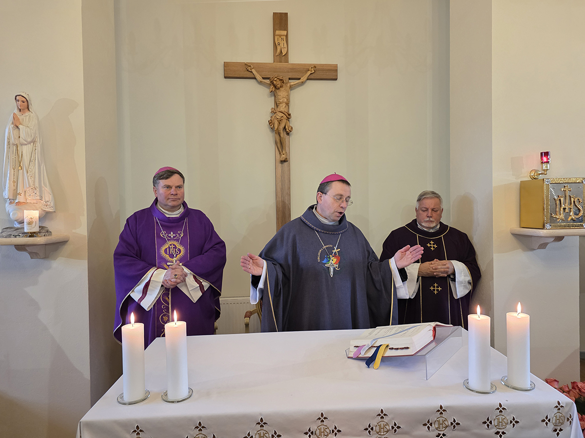 Šventinis minėjimas prasidėjo gimnazijos koplyčioje šv. Mišiomis, kurioms vadovavo Telšių vyskupas Algirdas Jurevičius, koncelebrabo buvę gimnazijos auklėtiniai – vysk. Darius Trijonis ir kan. Vilius Viktoravičius, buvę kapelionai – prel. Juozas Šiurys, mons. Rimantas Gudlinkis ir kan. Vygintas Gudeliūnas, dabartiniai gimnazijos kapelionai – Massimo Bianco SDB ir Ryan Oliver Bautista SDB.