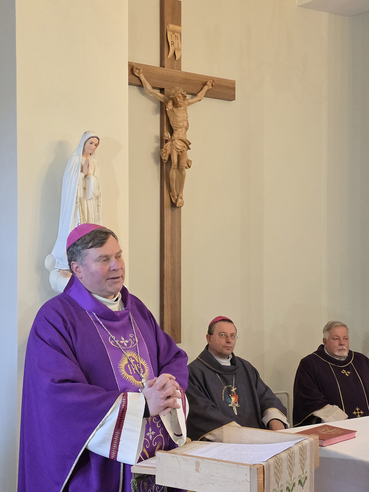 Pirmosios gimnazijos laidos auklėtinis vysk. Darius homilijoje prisiminė savo dienas gimnazijoje, dėkojo buvusiems mokytojams bei linkėjo Viešpaties palaimos. Po pamaldų šventės dalyviai salėje klausėsi gimnazijos direktoriaus Roberto Ežerskio kalbos, kurioje direktorius apžvelgė gimnazijos dabartį ir pasidžiaugė puikia bendruomene.