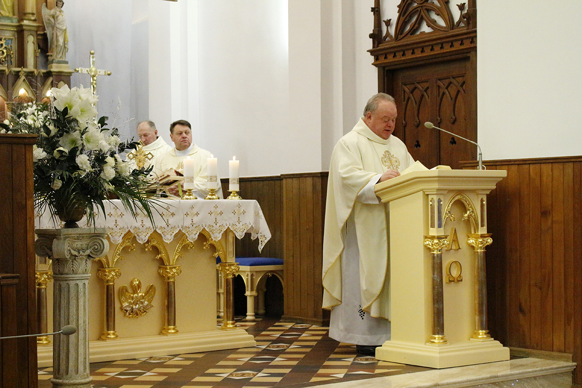 Homilijoje Telšių vyskupas komentavo pirmojo apaštalo Jono laiško eilutę apie besitraukiančią tamsą: „Tamsa traukiasi, o tikroji šviesa jau šviečia“. Ganytojas palygino gamtinį šviesos stiprėjimą nuo Kristaus gimimo šventės su dvasine šio reiškinio prasme: traukiasi nuodėmė ir beprasmybė, traukiasi neviltis ir tuštuma. Dievo planuose tamsos pasitraukimo reikaluose ypatingą vietą užėmė Birštonas, nes 1956-1958 metais čia gyveno iš lagerio grįžęs palaimintasis Teofilius Matulionis. 1957 m. gruodžio 25 d. vyskupas Teofilius slapta konsekravo vyskupu Vincentą Sladkevičių. Tai labai nepatiko sovietų režimui, kuris tuometinį Birštono klebonas Joną Jonį ištrėmė į Sibirą, vyskupas Teofilius buvo prievarta apgyvendintas Šeduvoje, o naujasis vyskupas 25 metus negalėjo eiti vyskupo pareigų.