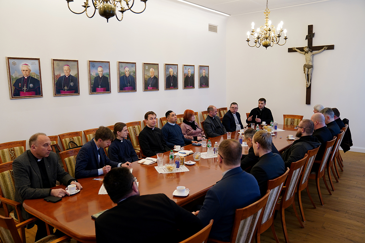 Kunigų seminarijos rektorius bei vyskupijos ekonomas kan. Jonas Ačas pristatė praėjusių metų rekolekcijų centro bei kunigų seminarijos rezultatus. Po vienu stogu esantis rekolekcijų centras bei seminarija 2025 metais turėjo 450.568,20 Eur pajamų ir 391.418,03 Eur išlaidų. Per praėjusius metus uždirbtos pajamos šiemet yra investuojamos į rekolekcijų centro infrastruktūros pagerinimą. Telšių kunigų seminarijoje organizuojamomis rekolekcijomis pasinaudoja vis daugiau gilesnio dvasingumo ieškančių žmonių. Kan. J. Ačas padėkojo parapijų klebonams ir jų parapijiečiams už visokeriopą pagalbą.
