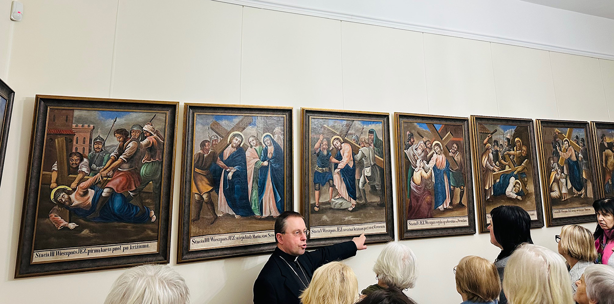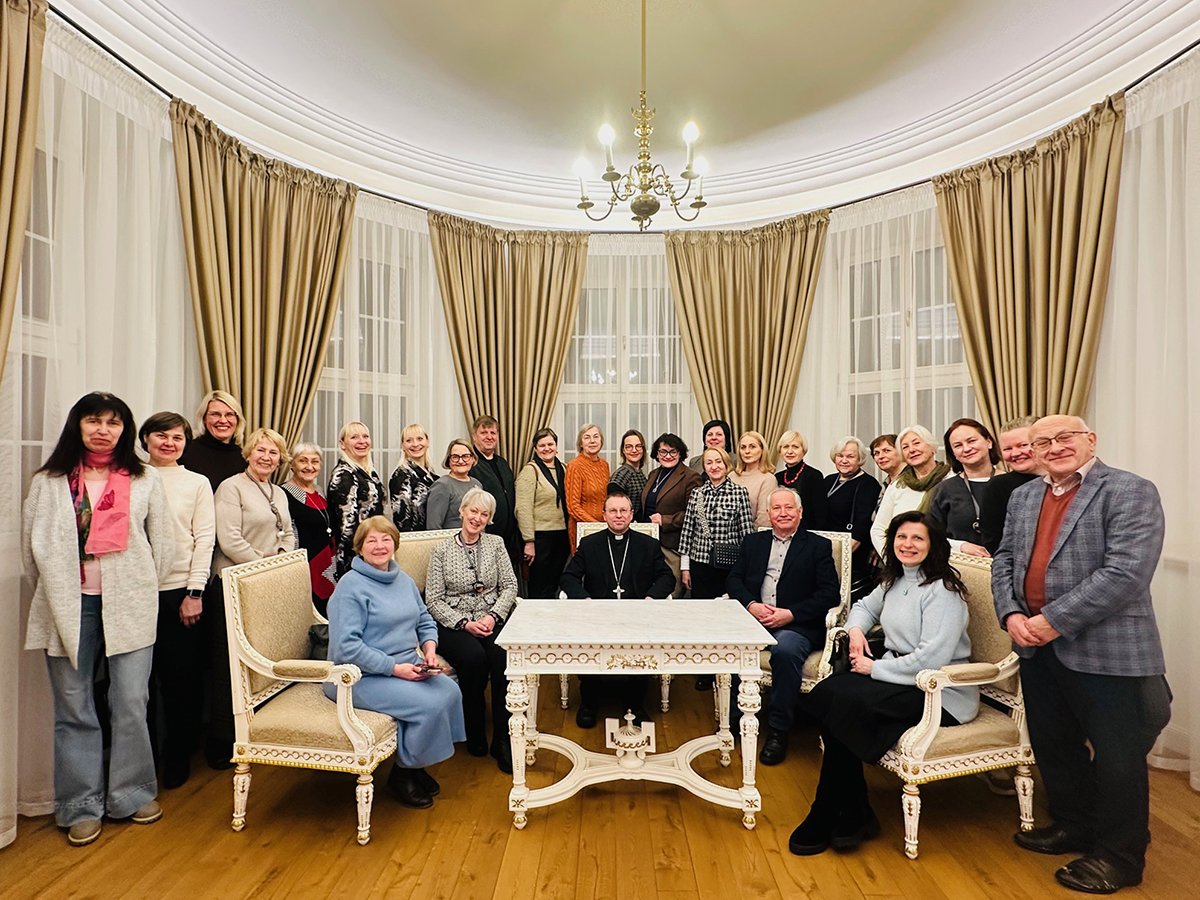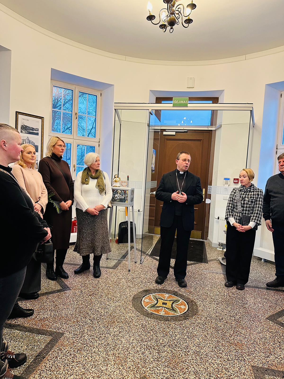 Susitikimas buvo tęsiamas pasidalijus į dvi grupes: viena jų rūpinosi kun. Saulius Stumbra, o kita – vyskupas Algirdas. Kompaktiškesnės grupės turėjo galimybę apžiūrėti mažesnes vyskupų rūmų erdves ir susipažinti su Šimtmetį švenčiančios Telšių vyskupijos istorija.