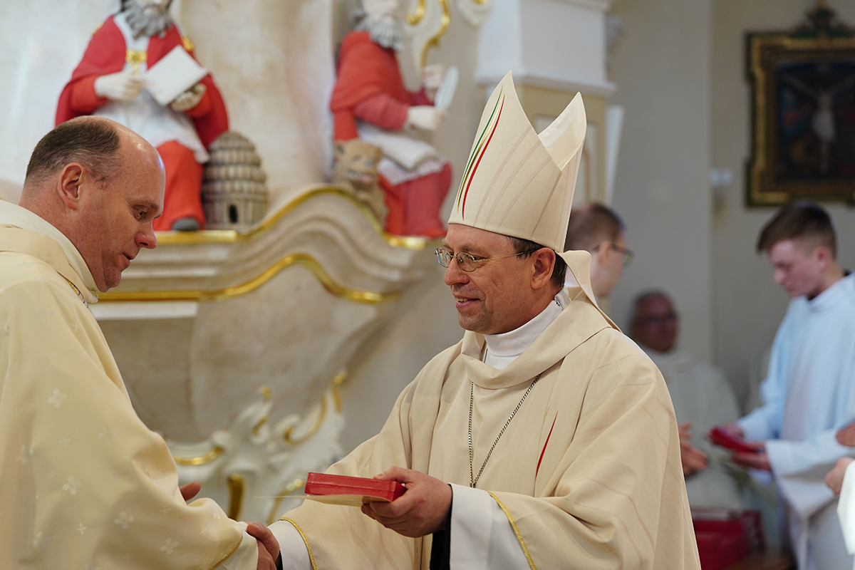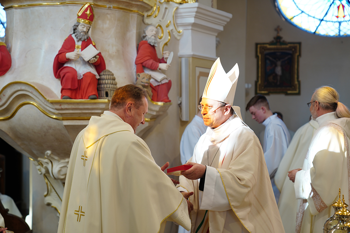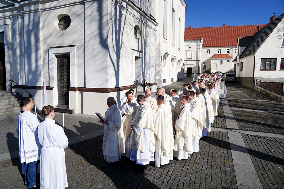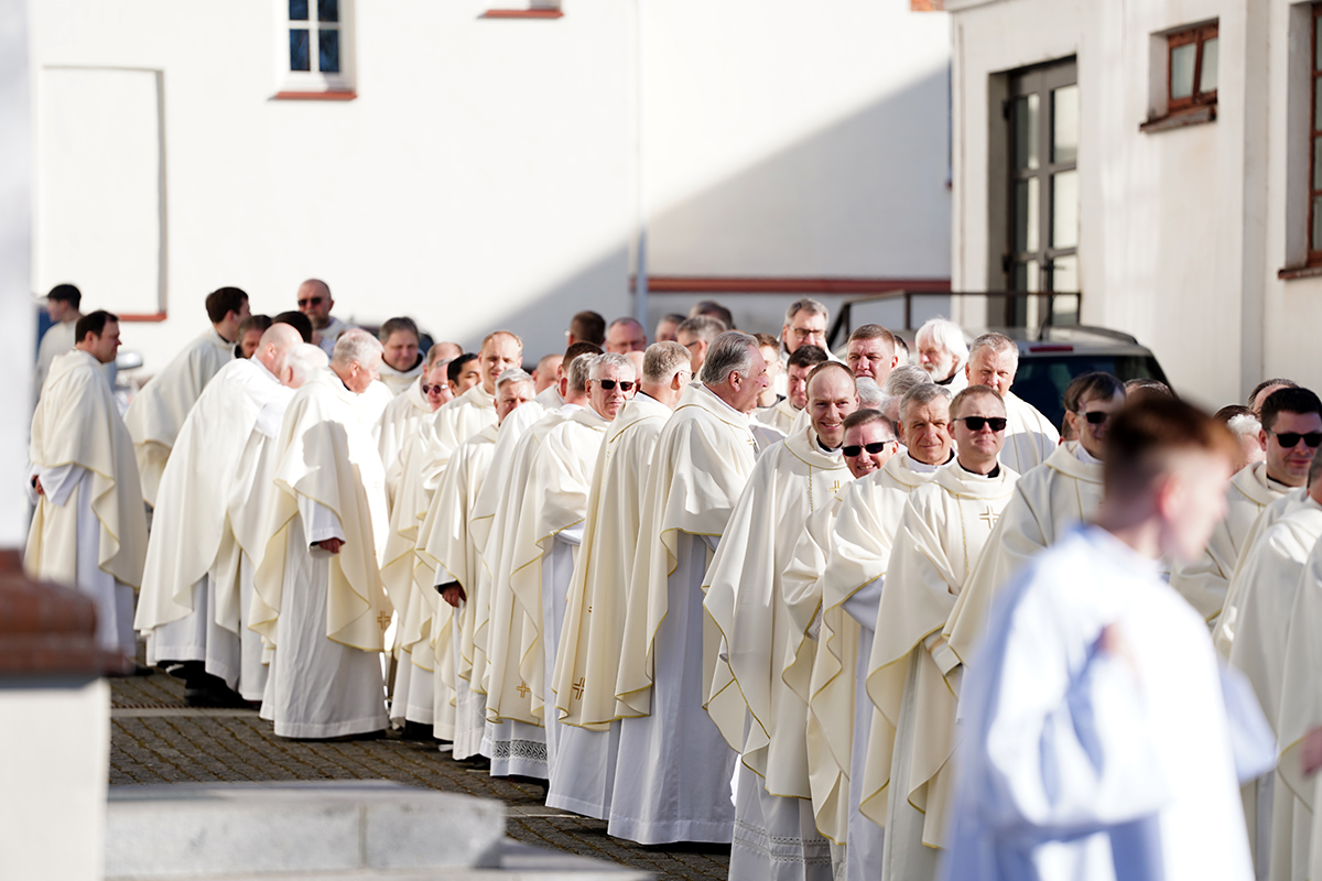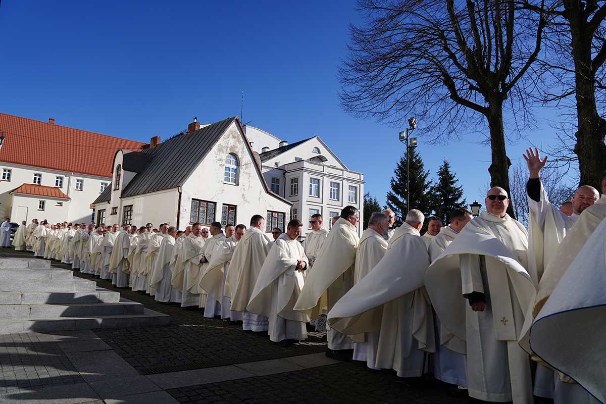 Homilijos pabaigoje vyskupas kalbėjo: „Dėkoju, kad ištikimai vykdote jums patikėtas pareigas, ganote Dievo žmones, dvasiškai juos stiprinate ir maitinate. Nepailskite šioje tarnystėje, bet atminkite, kad Dievo malonė ir Jo patepimas yra nuolat su mumis.“