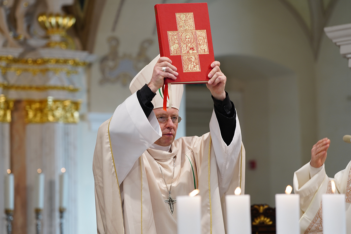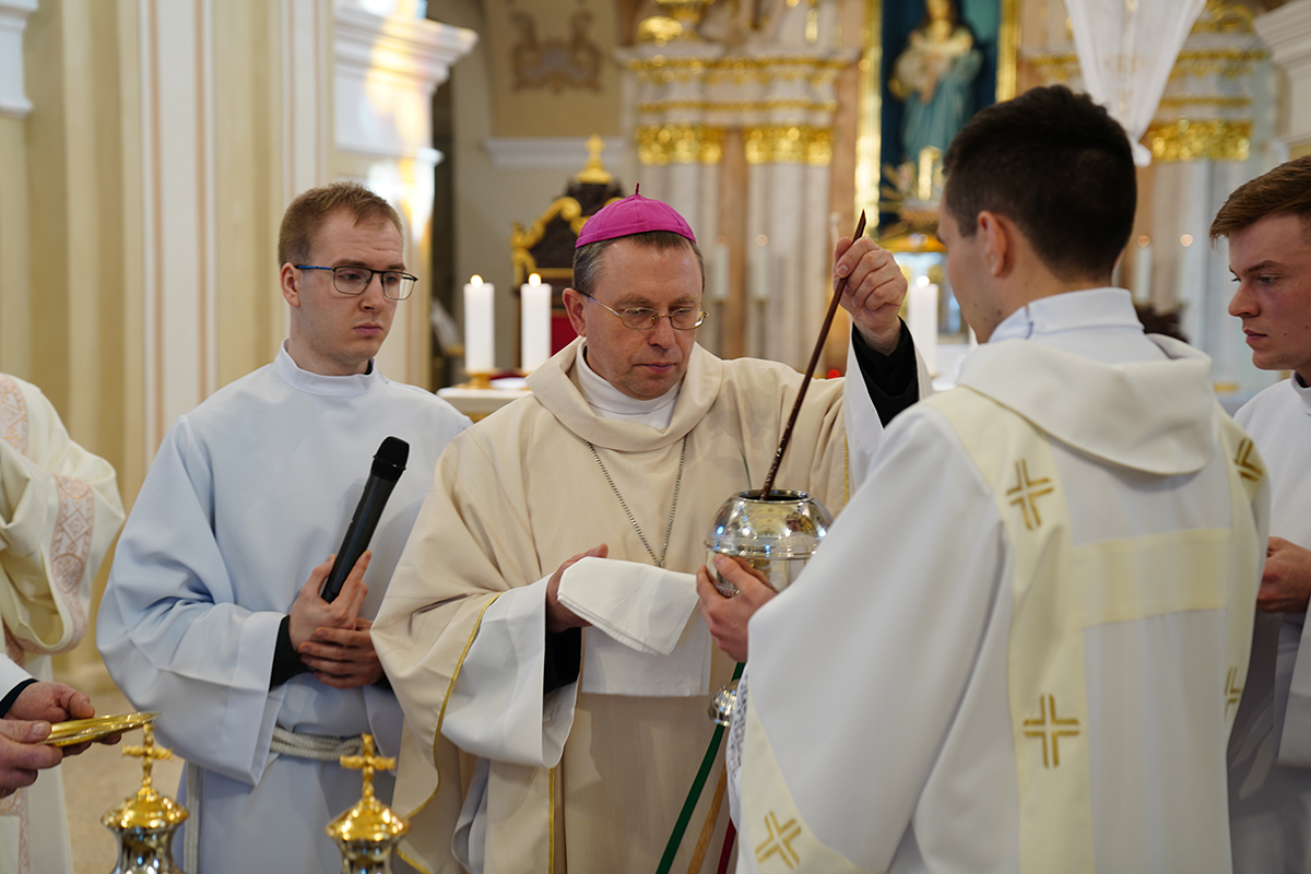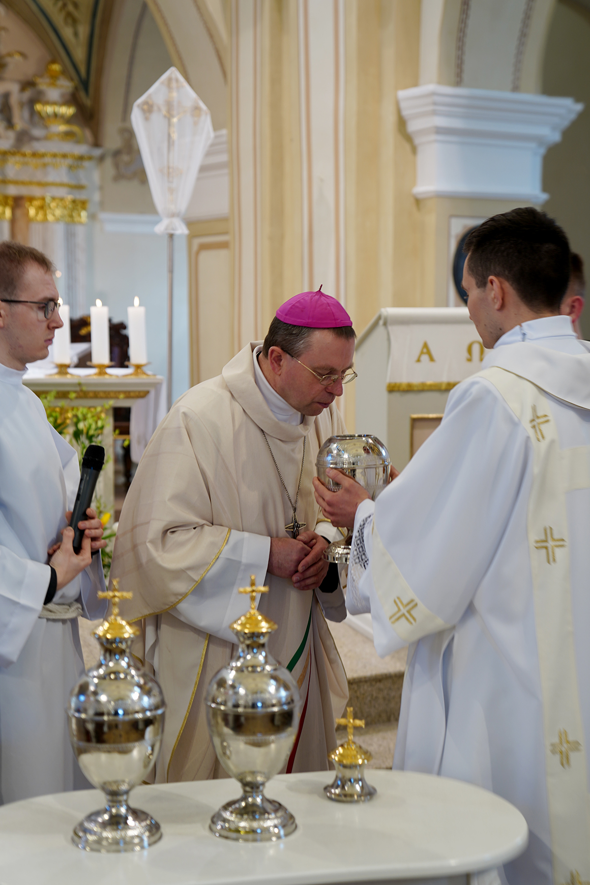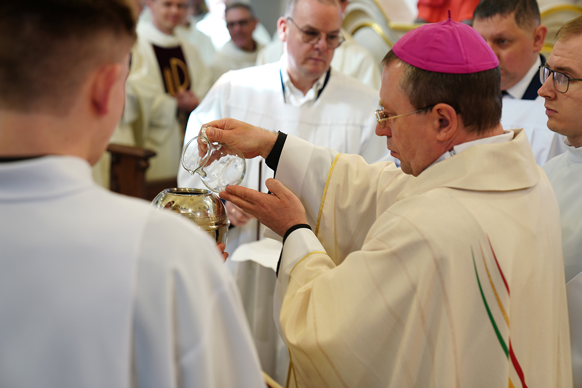 Homilijos pabaigoje vyskupas kalbėjo: „Dėkoju, kad ištikimai vykdote jums patikėtas pareigas, ganote Dievo žmones, dvasiškai juos stiprinate ir maitinate. Nepailskite šioje tarnystėje, bet atminkite, kad Dievo malonė ir Jo patepimas yra nuolat su mumis.“