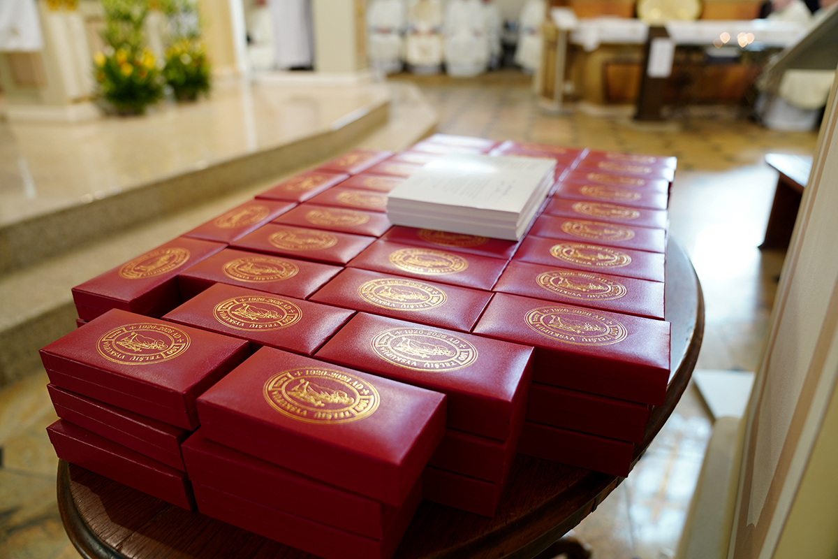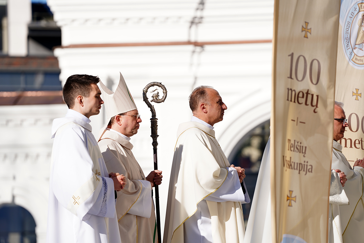 Po šv. Mišių vyskupas padėkojo dvasininkams už ištikimą tarnystę vyskupijos tikintiesiems ir paskelbė Šimtmečio proga apdovanojantis visus vyskupijos dvasininkus šv. Justino, Telšių vyskupijos Patrono, medaliu. Generalvikaras perskaitė apdovanojimo tekstą, o dvasininkai abėcėlės tvarka priėjo prie vyskupo gauti apdovanojimo. Dėkingumas Aukščiausiajam už kunigystės malonę ir už garbę Jam tarnauti tokiais įsimintinais Šimtmečio metais buvo išreikštas regimais ženklais. Atsidėkodami už pagerbimą kunigai taip pat įteikė vyskupui vertingą apdovanojimą bei gėlių puokštę. Dievo tauta gausiais plojimais pagerbė vyskupą, kunigus, diakonus, seminaristus bei kitus patarnautojus prie altoriaus. Tai buvo tikra kunigiškos Dievo tautos šventė.
